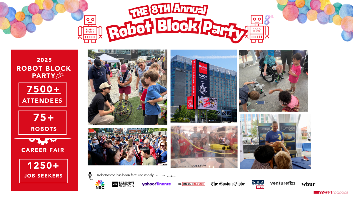 Join us at RoboBoston, the largest celebration of robotics that showcases cutting-edge robotics technology from more than 50 companies, universities, and student teams, all united in Boston’s vibrant innovation hub. As the largest gathering of its kind, this extraordinary event offers an unmatched opportunity to gain recognition from industry leaders and the robotics community.